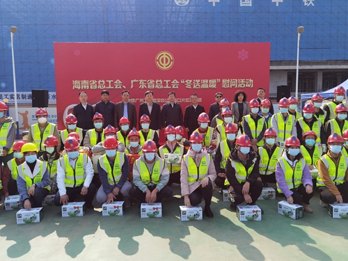 1月18日,海南省总工会、广东省总工会到中共海口市委党校新校区项目开展“冬送温暖”慰问活动