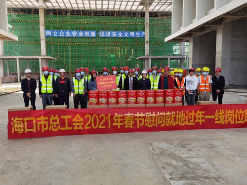 2月13日,市总工会副主席林小玉一行到市委党校新校区项目慰问一线工人