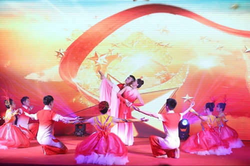 晚会在合唱《我们都是追梦人》中拉开了序幕,由舞蹈《迎风飘扬的旗》、情景剧朗诵《红船初心》、手势舞《国家》等10余个节目组成,恢宏大气的歌舞、声情并茂的吟诵、饱含深情的表演,艺术地展现了中国共产党奋斗、奋发、奋进的光辉形象,以及中国共产党团结带领中国人民艰苦奋斗的辉煌历程,获得了现场观众的阵阵掌声和喝彩,最后,晚会在全体人员激情澎湃的合唱《没有共产党就没有新中国》中圆满落幕。