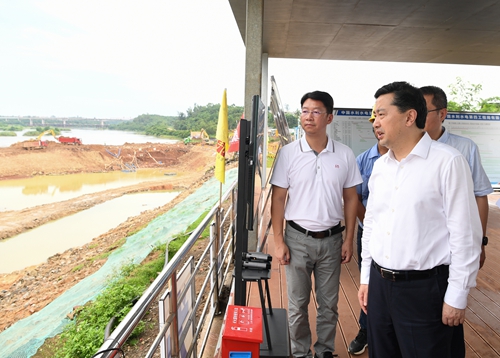 6月8日,省委常委、市委书记罗增斌一行调研海口市南渡江龙塘大坝枢纽改造工程
