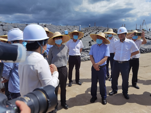 6月25日,海口市委副书记、市长丁晖,澄迈县委书记尹丽波一行调研颜春岭生活垃圾填埋场环境治理和生态修复工程项目