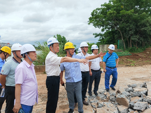 7月1日,省税务厅厅长王强带队视察海口市南渡江龙塘大坝枢纽改造工程防台防汛工作
