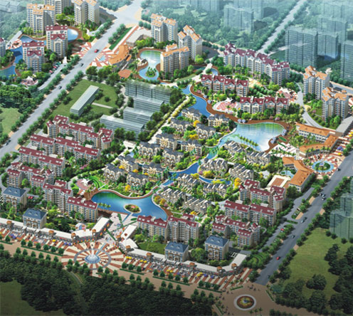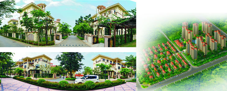 项目分为南北两区。其中:北区项目为别墅建筑,容积率仅为0.43,建设独栋、双拼、四联排别墅共38栋,合计72套;产品形态涵盖独栋、双拼和联排等,建筑风格为简约欧式建筑,户户前庭后院,并有阳光地下室,尊贵大气;南区项目由7栋33层的高层公寓住宅和一栋商务楼组成,计划在2013年开工建设。